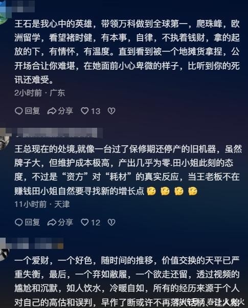 婚变风云2026年一开年,有网友发现田朴珺的外交账号一经删光了和王石的同框照。