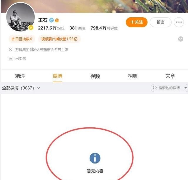 更奇怪的是,仳离传奇发酵后,王石还清空了我方的微博账号,让东说念主稀里糊涂。